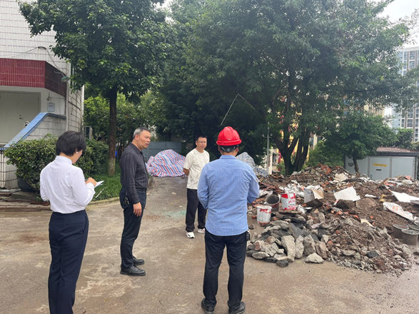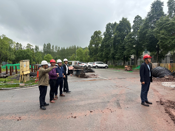 党委保卫部部长贺昌带队重点检查了施工现场的安全防护设施、施工用电、建筑材料堆放、消防安全等情况,并对施工人员的安全帽、安全带佩戴情况以及施工单位的安全管理制度、应急预案等进行了详细查看。