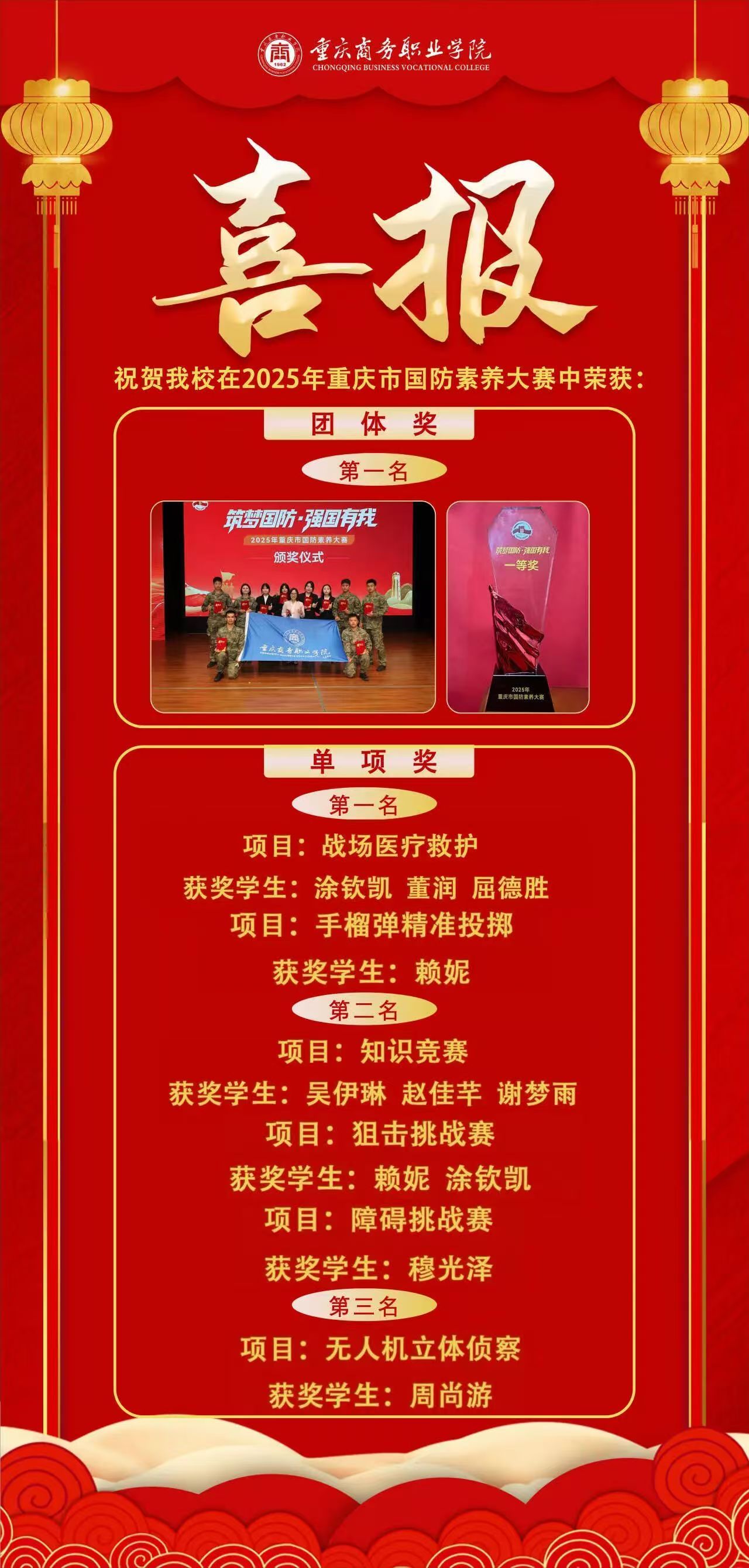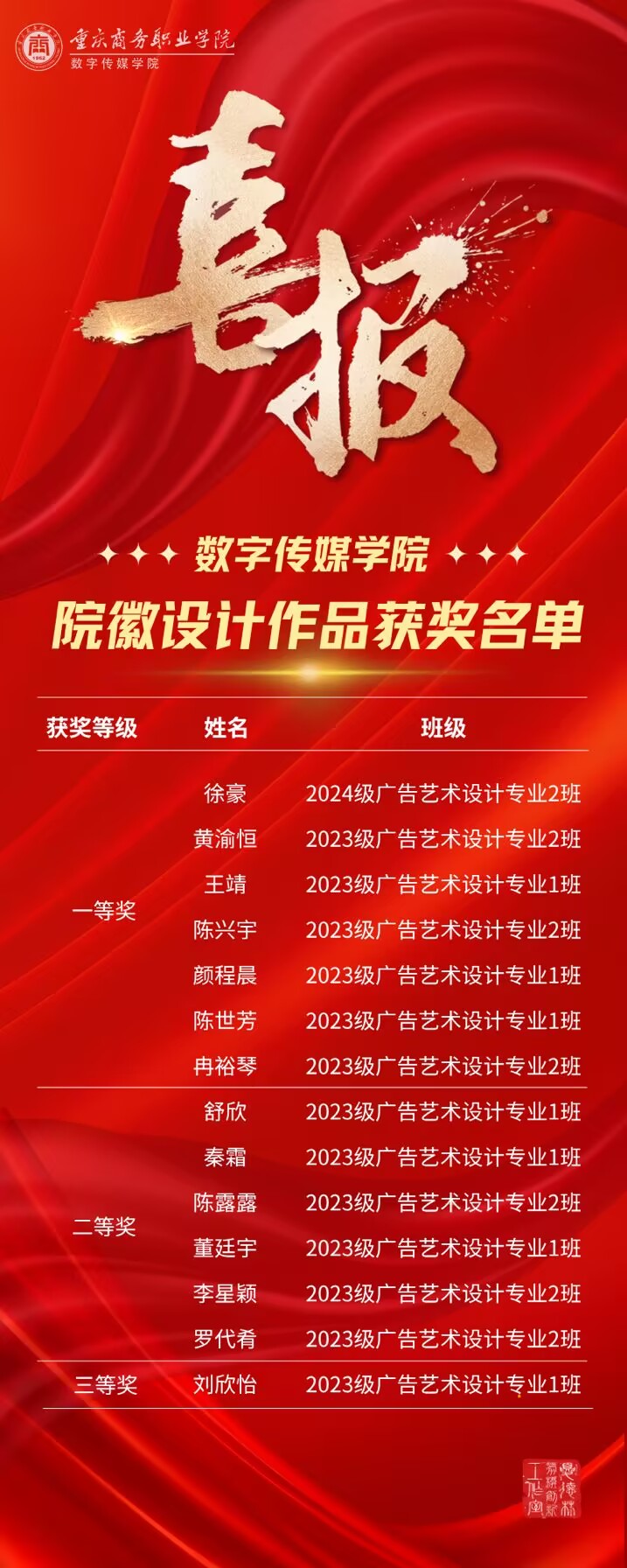 融文于技 逐光而行——数字传媒学院在重庆职业院校技能大赛斩获佳绩近日,2025 年重庆市职业院校技能大赛火热开赛。在学校党委行政的坚强领导下,在教务处的悉心指导及各部门的鼎力支持下,数字传媒学院师生凝心聚力、奋勇拼搏,历经 1 个月的艰苦备赛与激烈角逐,凭借扎实的专业功底、创新的设计理念和默契的团队协作,在四个赛道崭露头角,最终组建的10支参赛队伍不负众望,斩获1金5银2铜的优异成绩,彰显了学院高技能人才培...