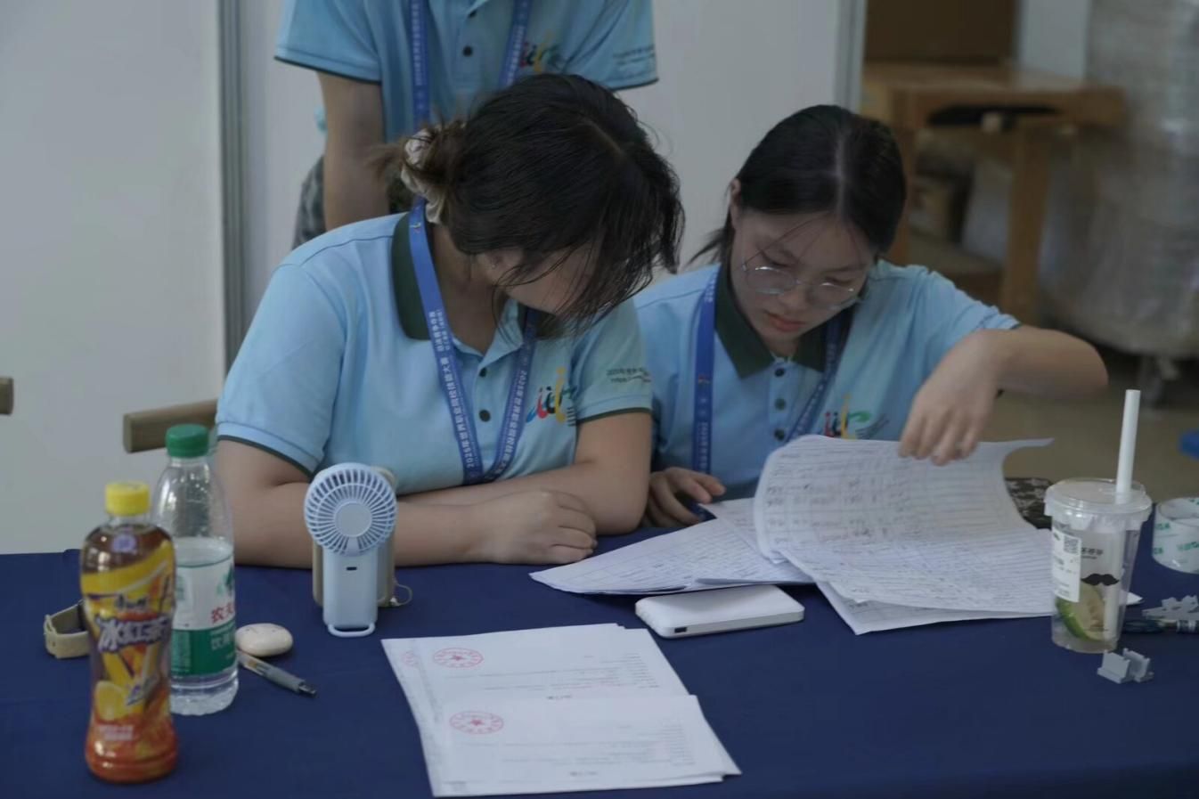 在赛事准备到比赛,从赛场外到赛场内,志愿者们化身“多面手”,在各个岗位上展现出高效协同的专业素养。教师志愿者们以身作则,每天提前到场,提前安排一天的工作。赛务组、竞赛组、后勤保障组、对接组等小组的志愿者用脚步丈量赛场的每一个角落。他们每天早早到岗,在报到处、检录区、休息区之间穿梭,为参赛师生提供路线指引、信息咨询等服务。而宣传组的志愿者则手持相机、摄像机,蹲守在赛场以专业的技能捕捉精彩瞬间,让外界直观感受到此次大赛的魅力。