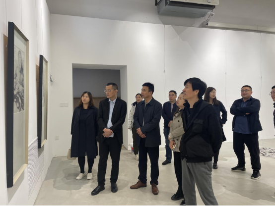 随后,调研团队在陕西职业技术学院环境艺术学院党总支书记、院长张勇的带领下参观了学院美育体验中心、视觉生产性实训中心、E号仓实用美术社团创新创业基地等实训室以及刘文西绘画艺术研究中心。
