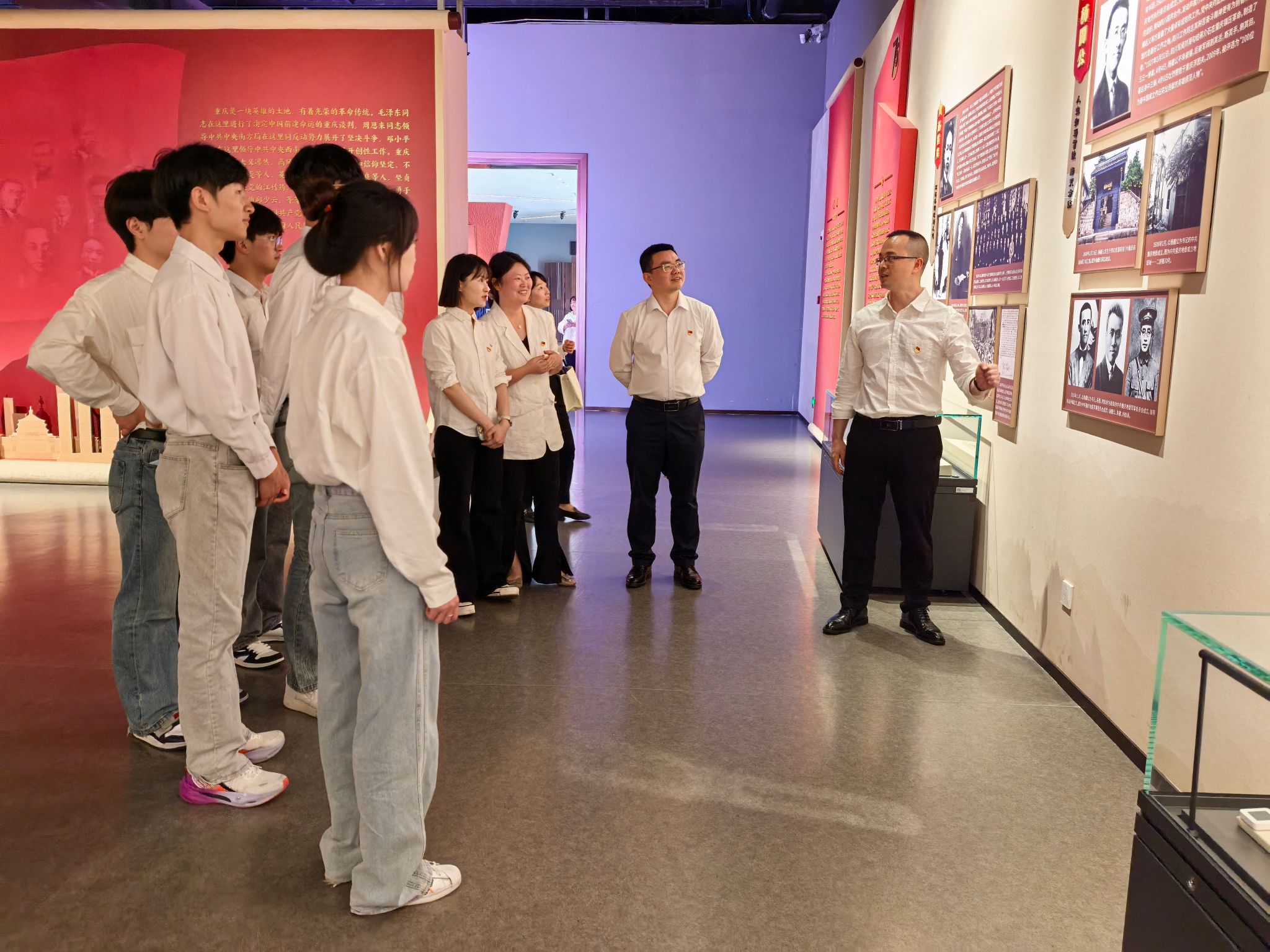 最后,各党支部书记化身“红岩故事宣讲员”,在纪念馆开展志愿服务。利用专业特长拍摄红色文化微视频,此次活动圆满结束。