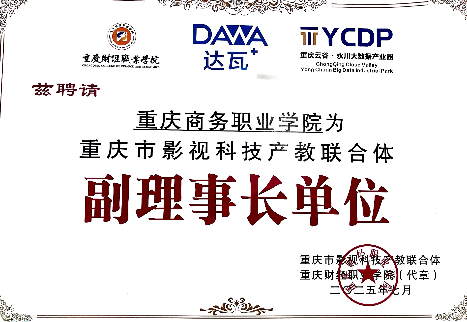 重庆商务职业学院获任重庆市影视科技产教联合体副理事长单位,是业界对重庆商务职业学院数字传媒学院多年深耕产教融合、教育教学改革创新所取得成绩的肯定,凸显了学院在重庆影视科技教育领域的前沿地位和示范作用。