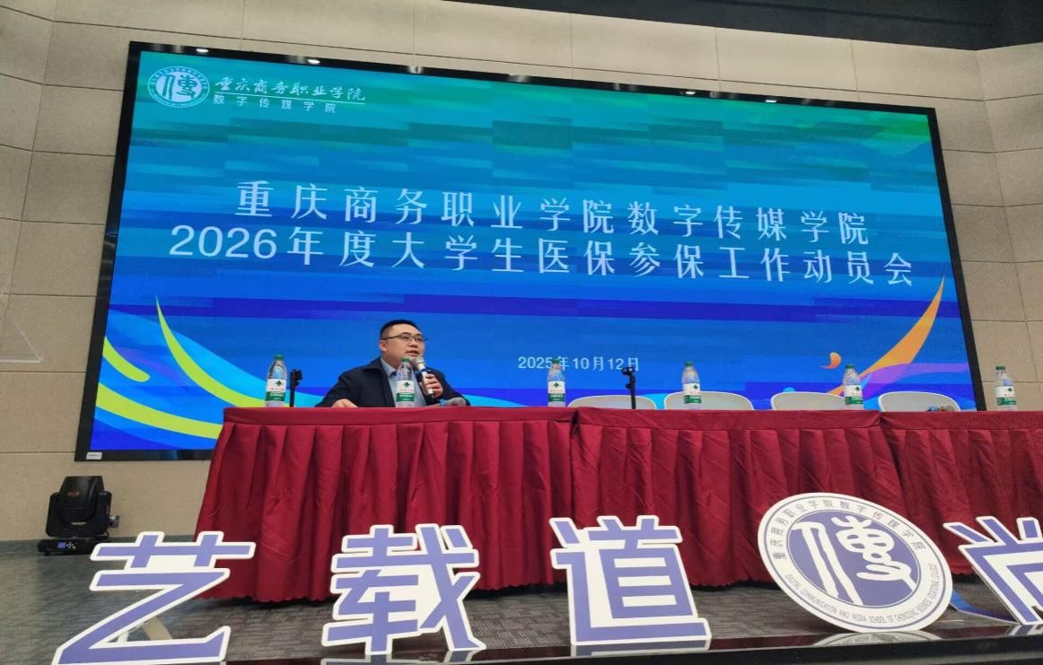 为确保 2026 年在渝高校大学生城乡居民基本医疗保险参保工作有序推进,11月13日,重庆商务职业学院数字传媒学院组织召开医保政策专题解读会。学院副院长王卫华主持会议,特邀校医务室孙医生、学工部姚老师、全体专兼职辅导员及各班级学生代表参会。