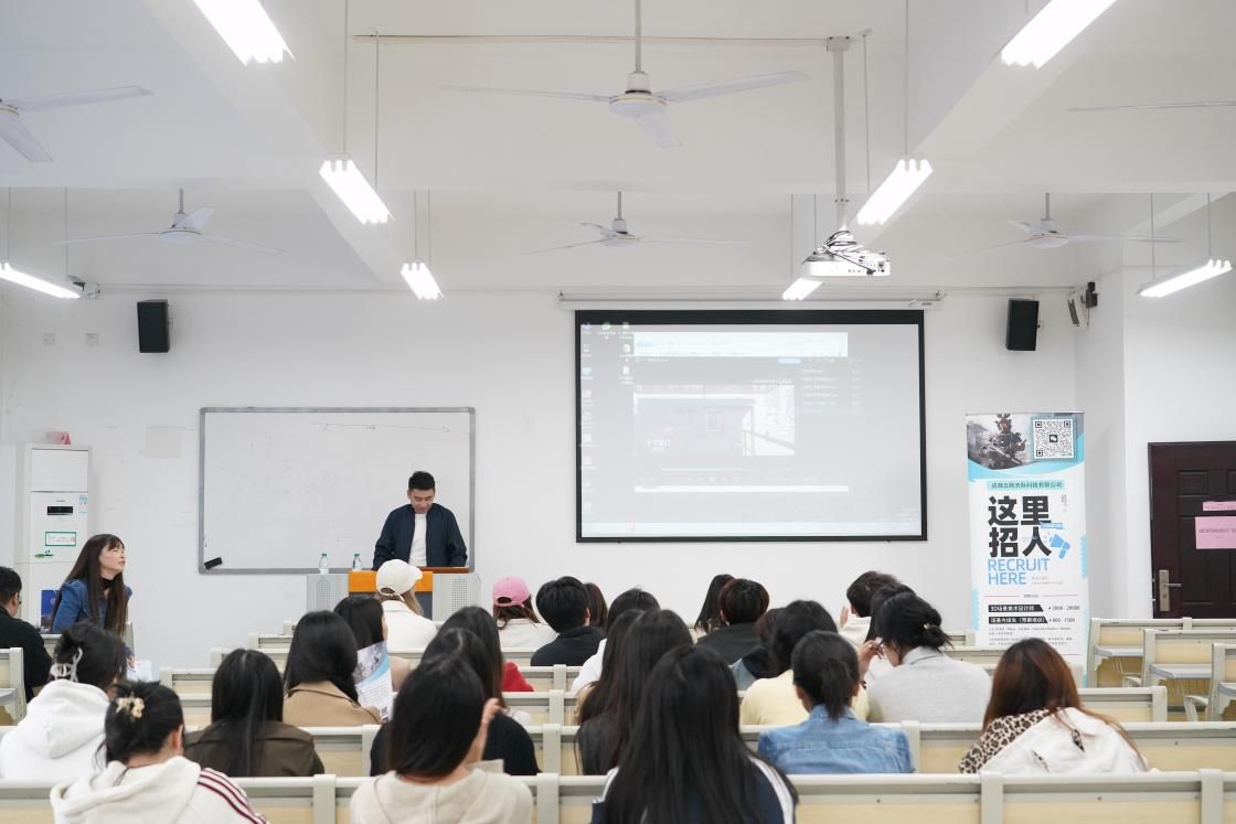 座谈交流结束后,企业专场宣讲会同步启动。各企业代表通过案例分享、PPT 演示等形式,全面介绍了公司发展概况、核心业务板块、企业文化及 2025 年招聘计划,针对同学们关心的薪资待遇、晋升路径、技能要求等问题逐一解答,帮助毕业生清晰了解行业动态与就业机会。宣讲环节结束后,就业双选会正式开启,来自数字媒体、广告设计、影视制作等领域的多家企业现场设展,与毕业生面对面沟通,通过简历筛选、现场面试等环节,精准对接用人需求。