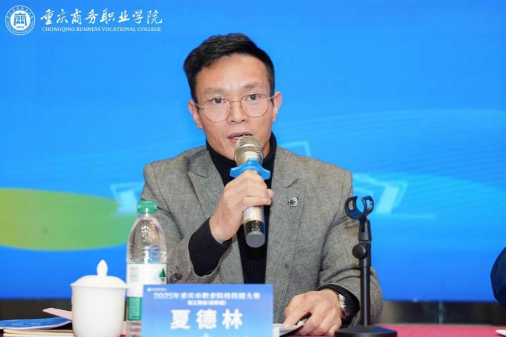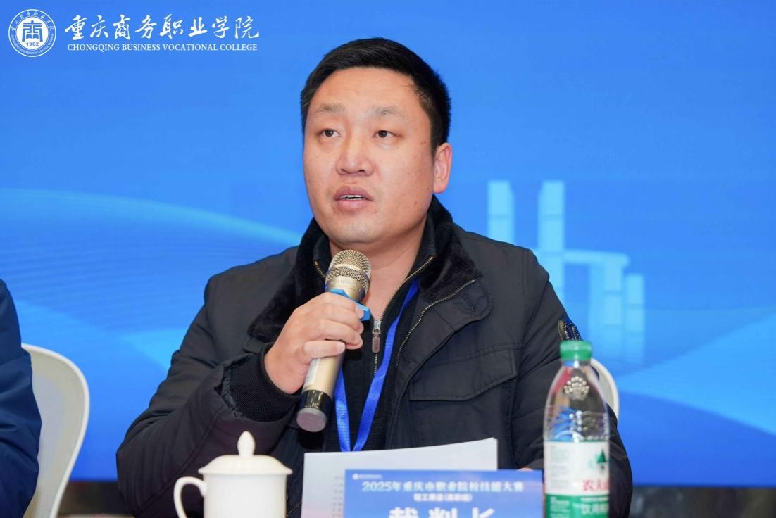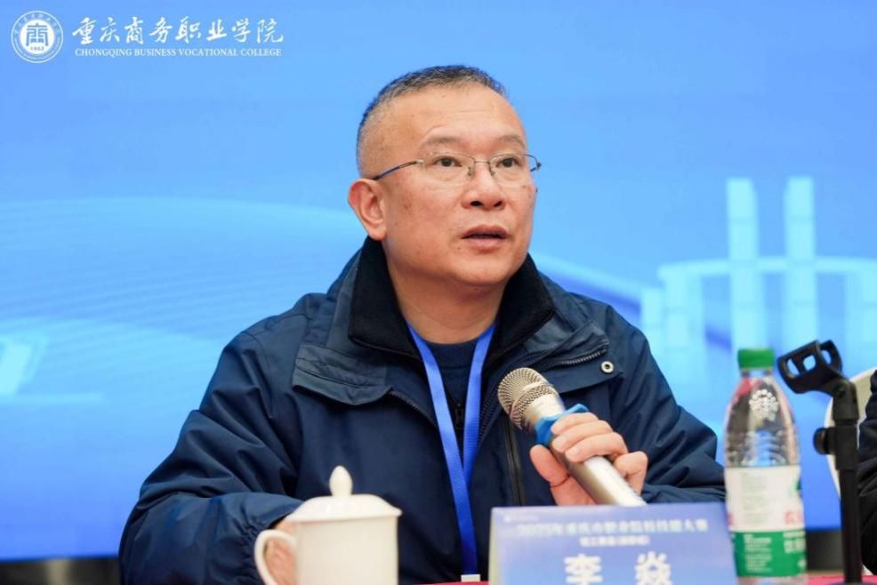 夏德林介绍,本次比赛于 1 月 9 日在重庆商务职业学院学生活动中心三楼正式开赛。赛事赛项设置紧密对标行业新技术、新工艺与新标准,突出实践导向,深度还原真实工作情境。为保障赛事平稳有序推进,学校赛前专门成立专项工作组,围绕竞赛组织、技术保障、安全管理、志愿服务等关键环节制定周密详实的实施方案,以全流程精细化筹备,确保比赛安全、公平、高效开展。