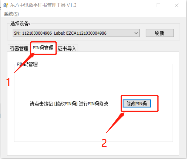双击该图标,弹出数字证书管理工具如下图所示,依次点击PIN码管理à修改PIN码à输入旧密码与新密码à点击【确定】即可