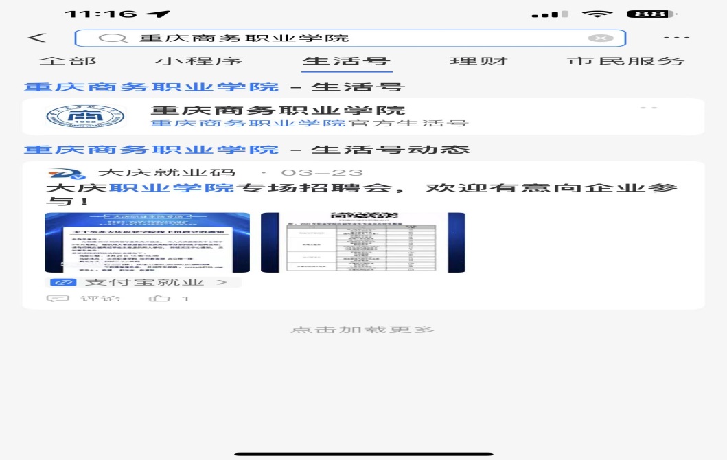 五、 开通后可在支付宝“重庆商务职业学院-生活号”缴费大厅“资金发放”查看是否有领取任务并领取提现。