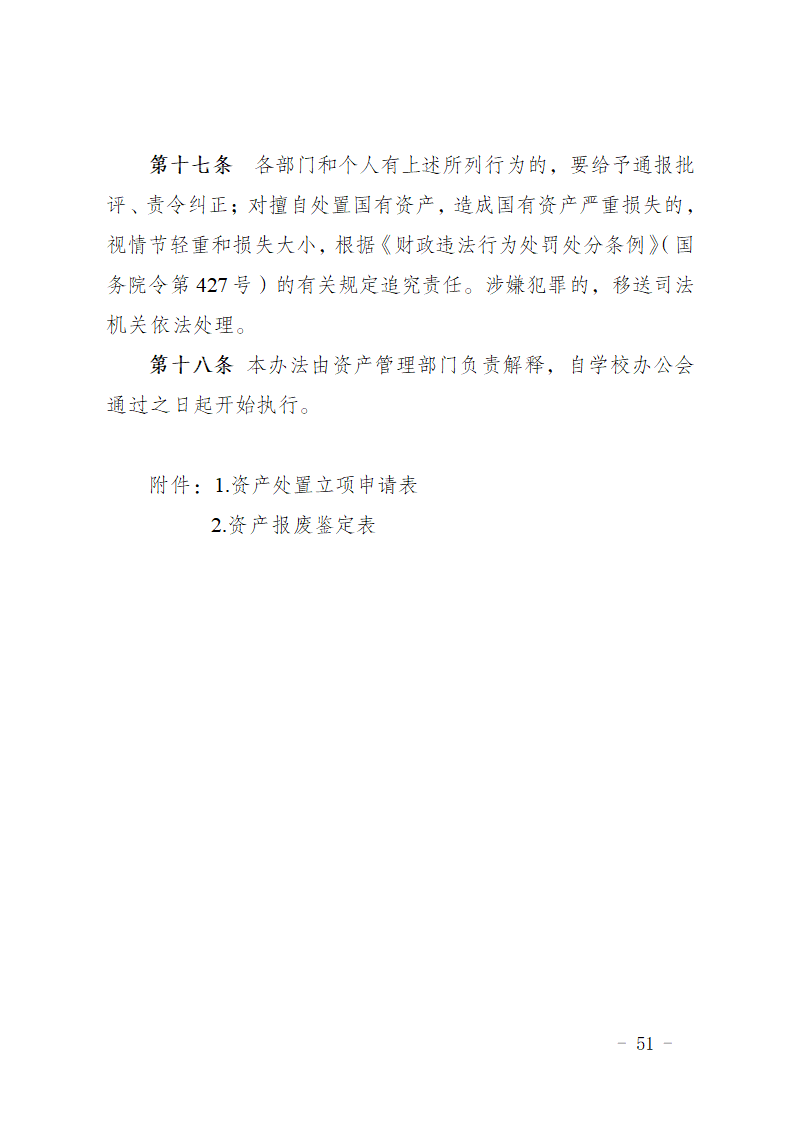 关于印发《国有资产管理暂行办法》、《固定资产管理办法》、《国有资产出租出借管理办法》、《资产处置管理办法》等4个制度的通知