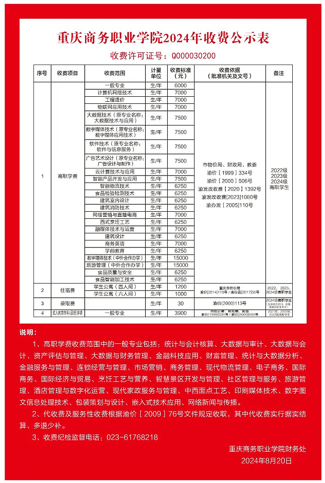 附件【重庆商务职业学院2024年收费公示 .docx已下载