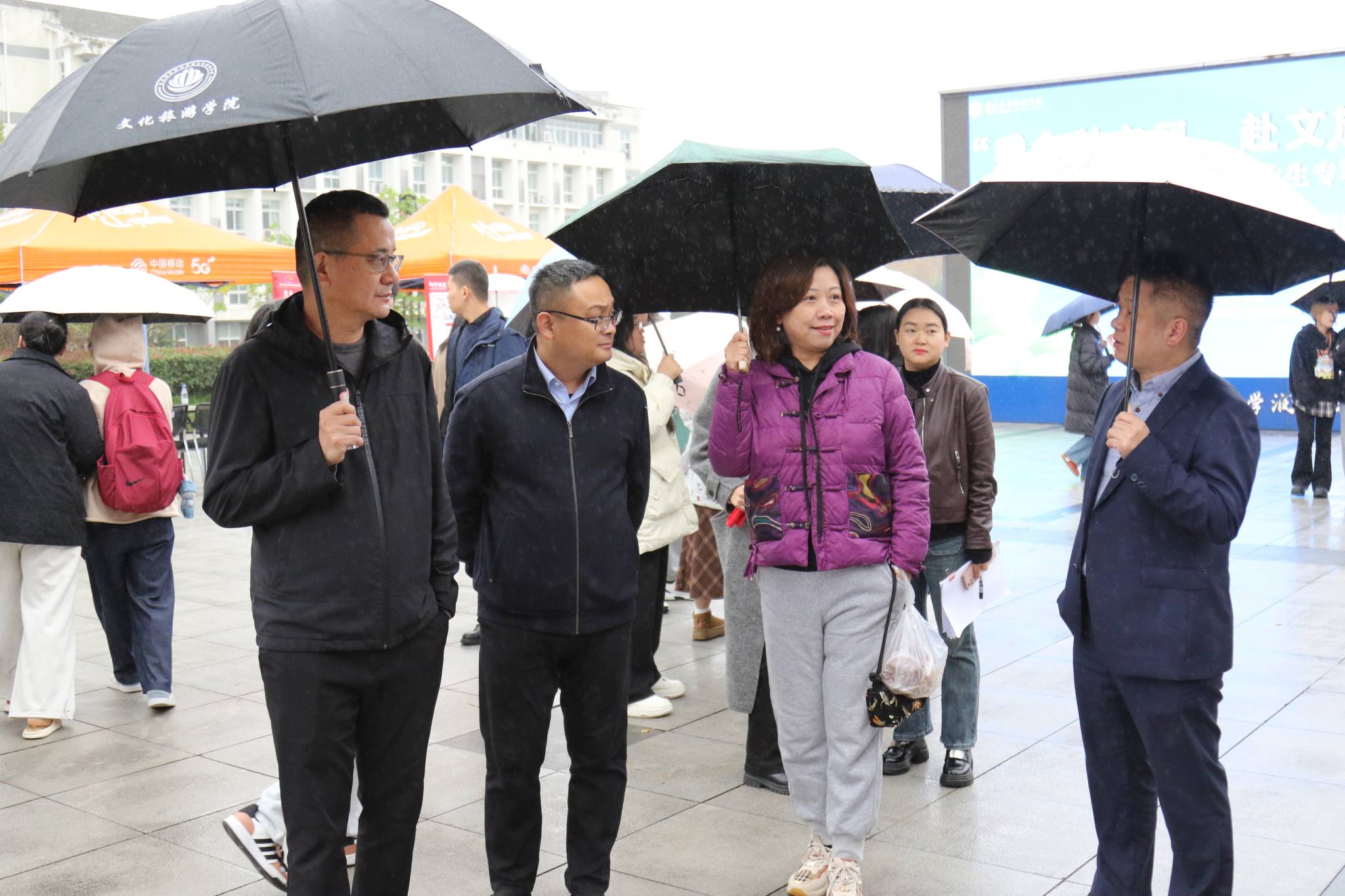 11月17日,文化旅游学院“乘金秋之风,赴文旅之约”2026届毕业生专场招聘会在明德广场成功举办。学校副校长贾小波、招生就业处、文化旅游学院党政负责人一行亲临现场巡视指导,与参会企业代表、应聘学生深入交流,为招聘会注入强劲动力。