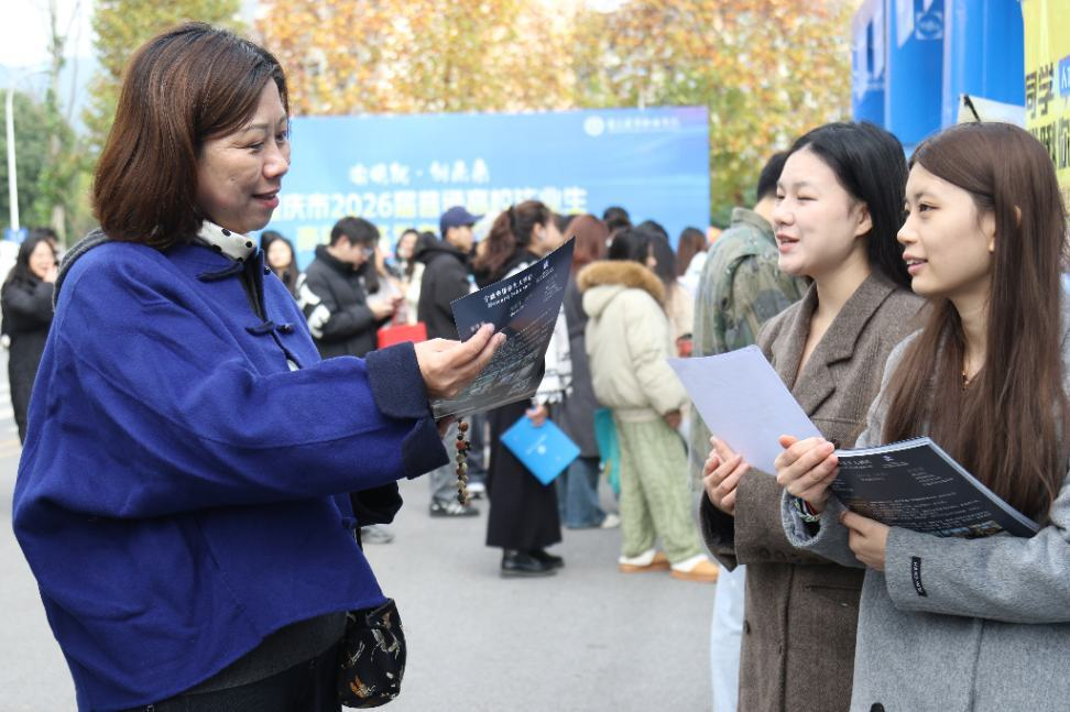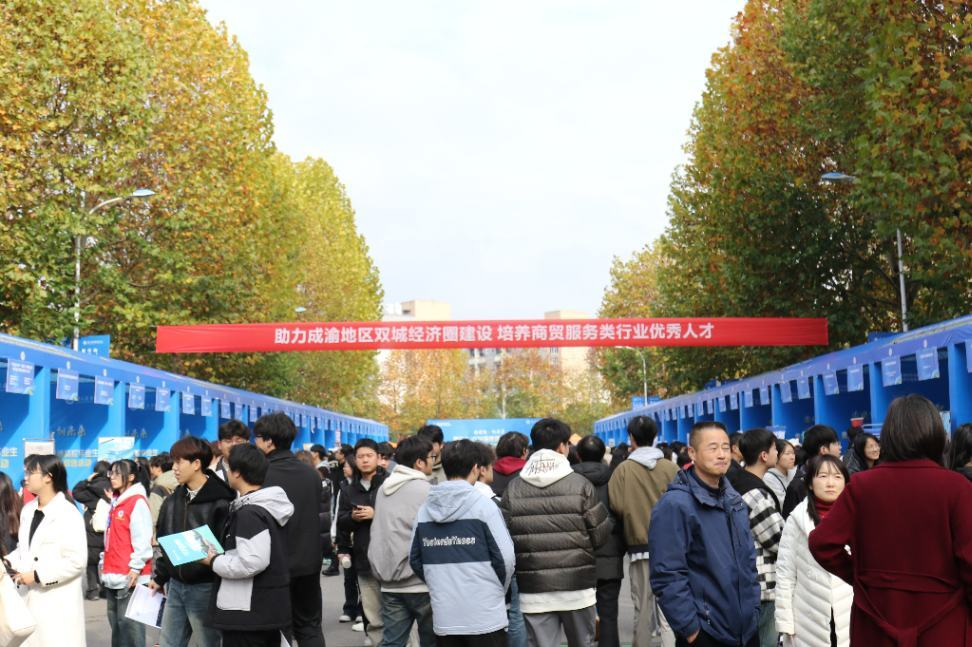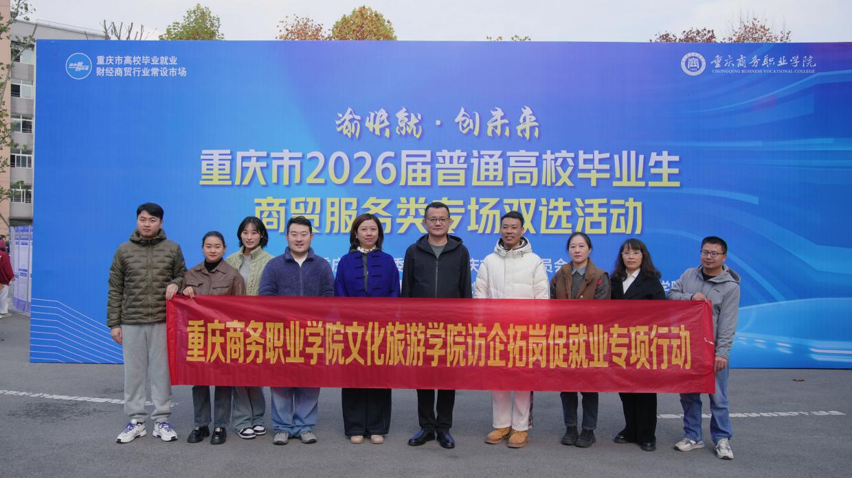 为深入贯彻教育部“金秋启航”校园招聘月部署,精准引导2026届毕业生把握求职关键期,促进高质量充分就业,11月19日上午,“渝快就·创未来”重庆市2026届普通高校毕业生商贸服务类专家双选活动在学校梧桐大道隆重举行。文化旅游学院院长赵晓芳带领学团办、毕业班辅导员及任课教师代表深入双选会现场,开展访企拓岗促就业专项行动。