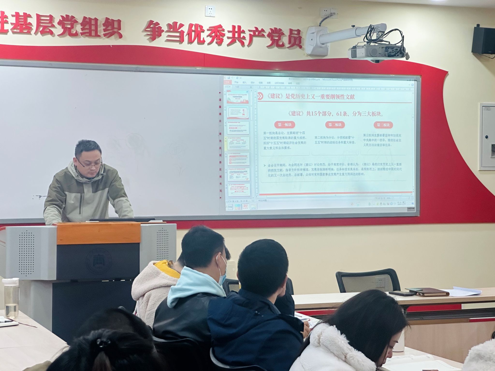 本次党课从全会召开的重大意义、核心要义及实践要求出发,强调党的二十届四中全会是在即将进入基本实现社会主义现代化夯实基础、全面发力关键时期召开的一次十分重要的会议,全会审议通过的《中共中央关于制定国民经济和社会发展第十五个五年规划的建议》,为未来五年发展作出了顶层设计和战略擘画,是乘势而上推进中国式现代化建设的总动员、总部署。