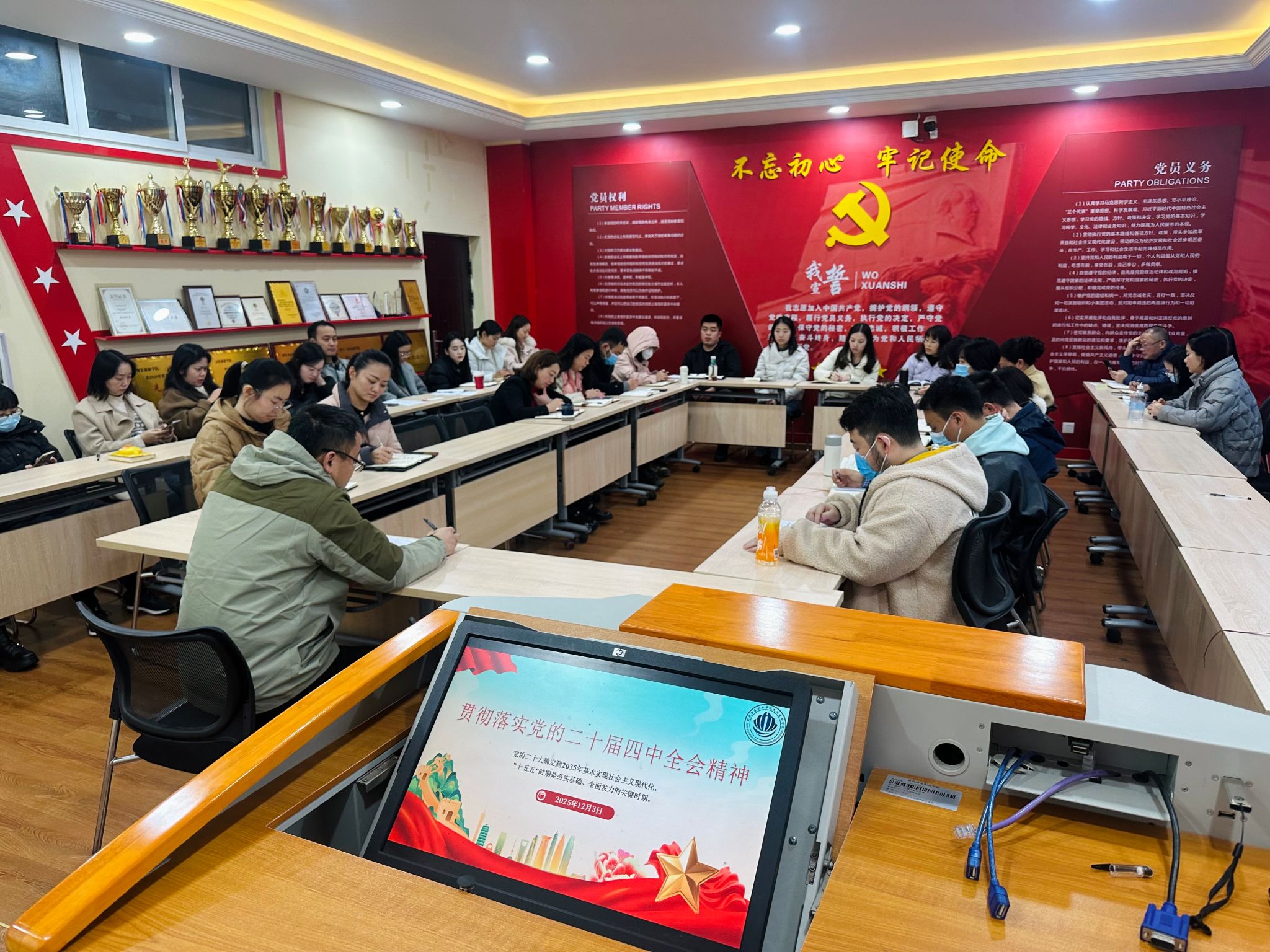 为深入学习贯彻党的二十届四中全会精神,切实把全院师生的思想和行动统一到党中央决策部署上来,12月3日,文化旅游学院组织开展学习贯彻党的二十届四中全会精神专题党课。学院党总支书记莫灼宇主讲,全体教职工参加本次学习。