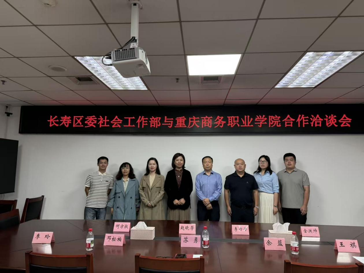 2025年10月13日下午,长寿区委社会工作部与重庆商务职业学院合作洽谈会在长寿区委社会工作部会议室顺利举行。长寿区委社会工作部部长苏勇、相关科室负责人,重庆商务职业学院文化旅游学院院长赵晓芳、学院骨干教师代表出席会议。