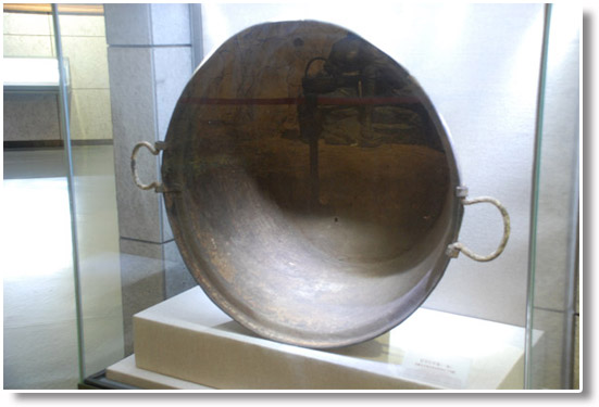 这口行军锅是红军送给本地人钟伦扬的礼物。红军走后不久,国民党兵挨家挨户搜查,为不让这口锅落入他们手里,钟伦扬背上锅就往屋后的大山跑。国民党兵发现有人往山上跑,举枪就朝钟伦扬打了一枪。只听“当”的一声,子弹打在锅上,钟伦扬应声倒地。幸运的是,子弹穿过锅并没有击中钟伦扬的要害,钟伦扬只是受了点轻伤。后来,钟伦扬把被枪打了个洞的锅背回家,由于没法再用了,他便留起来作纪念。