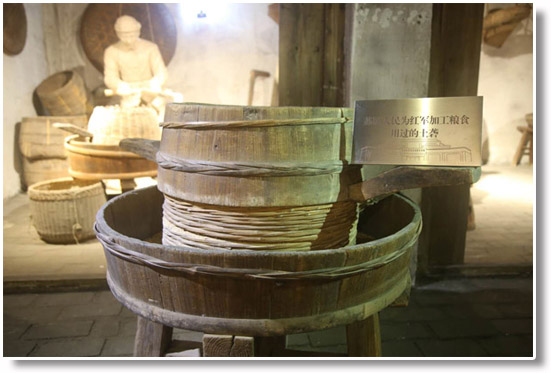 这是苏区时期加工粮食用的土砻。当年,红军主力在于都境内集结,吃饭是一件头等重要的大事。苏区人民宁可自己忍饥挨饿,也要将粮食源源不断地交给红军。为保证稻米供应,于都每个乡、每个村、每个屋场甚至每户人家都动员起来了,集中几座砻、几个碓,日夜不停地砻米、舂米、筛米。
