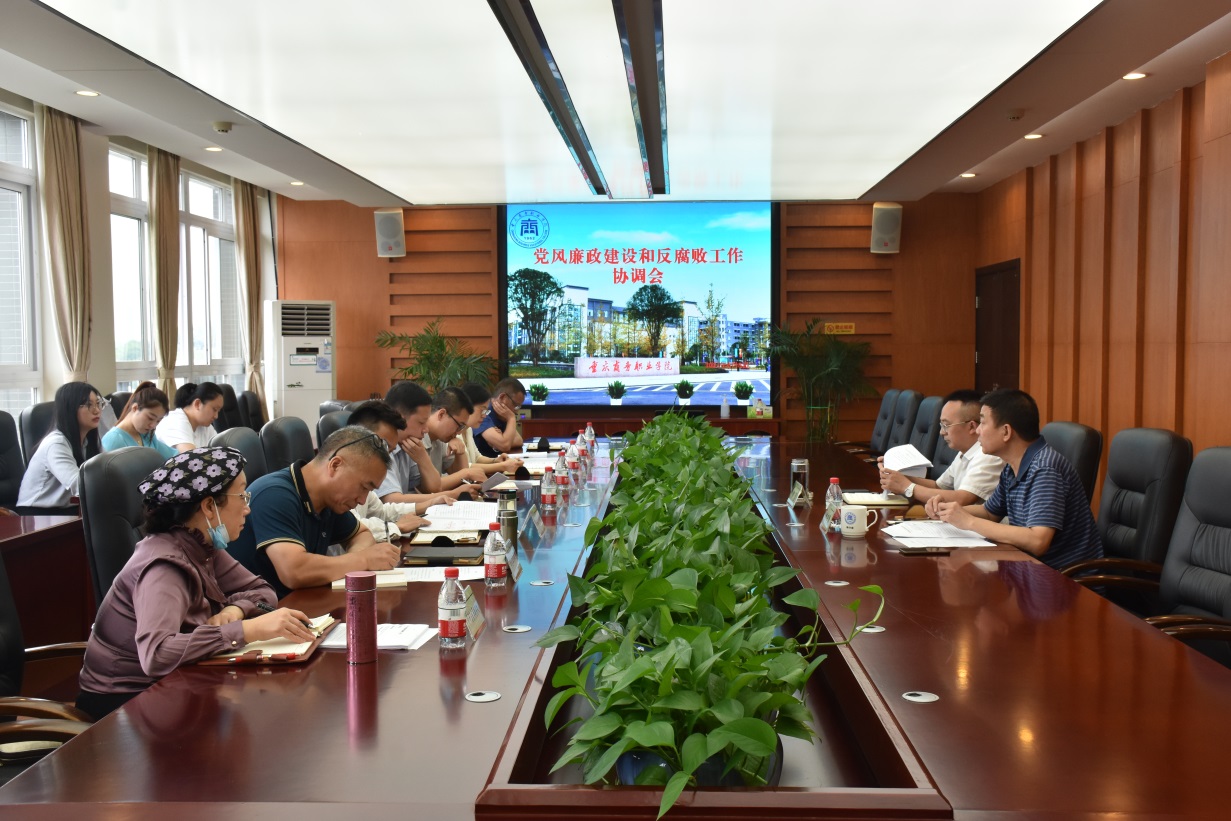 2021年6月9日,学校召开党风廉政建设和反腐败工作协调会。纪委书记杨守康主持会议,党委书记谭勇、组织人事处、党政办公室、纪检监察室、宣传部(统战部)、学生工作部、科研处(发展规划处)、教务处、审计处主要负责人等共计12人参加会议。