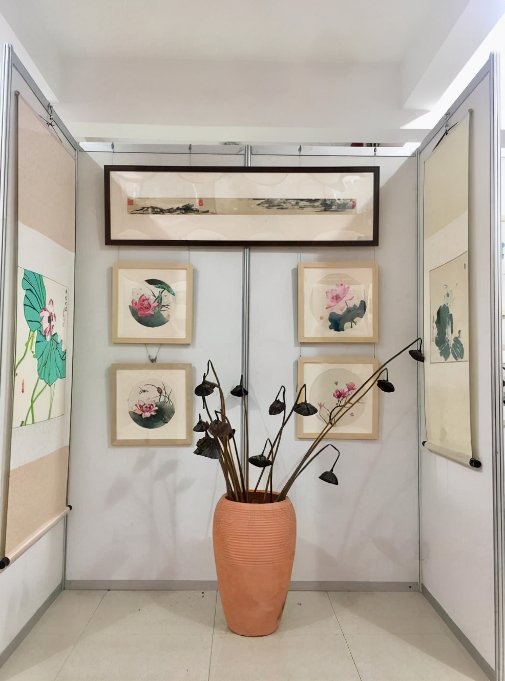 展出以“莲”喻“廉”,作品中有多幅莲花,“墨留丽影展”,墨荷写意自然,淡泊之姿跃然而出;“绿荷红菡萏”,彩荷清新雅致,清纯独立令人神往;还有品质高洁的玉兰、纯净无垢的婴儿、舒朗开阔的远山、质朴庄严的莲蓬……载道出纪检干部不忘传承红色血脉、永远忠诚干净担当的情怀。