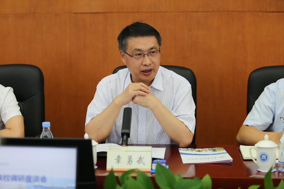 调研结束后,在学校六会议室召开了座谈会。会上,章勇武主任听取了教师代表李春红、张秀兰、陈勇的发言,代表市商务委向辛勤耕耘在教育战线上的广大教师和教育工作者致以亲切的问候和节日的祝福。校党委书记江涛代表学校党政班子围绕持续加强党的建设、坚持党建统领事业高质量发展、坚持能力提升服务重庆商务发展等三个方面作了全面工作汇报。校长陈忠飞围绕“新双高”建设、办学条件改善、学校发展规划等方面进行了补充汇报。