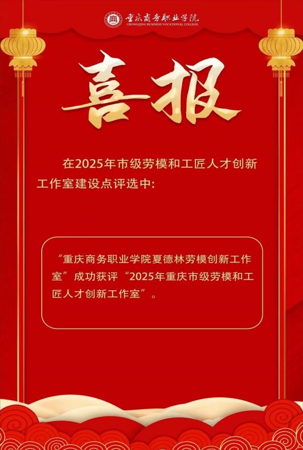 【文/工会妇联 图/党委宣传部】近日,重庆市总工会《关于发布2025年市级劳模和工匠人才创新工作室建设点的通知》,我校“夏德林劳模创新工作室”成功获评“2025年重庆市级劳模和工匠...