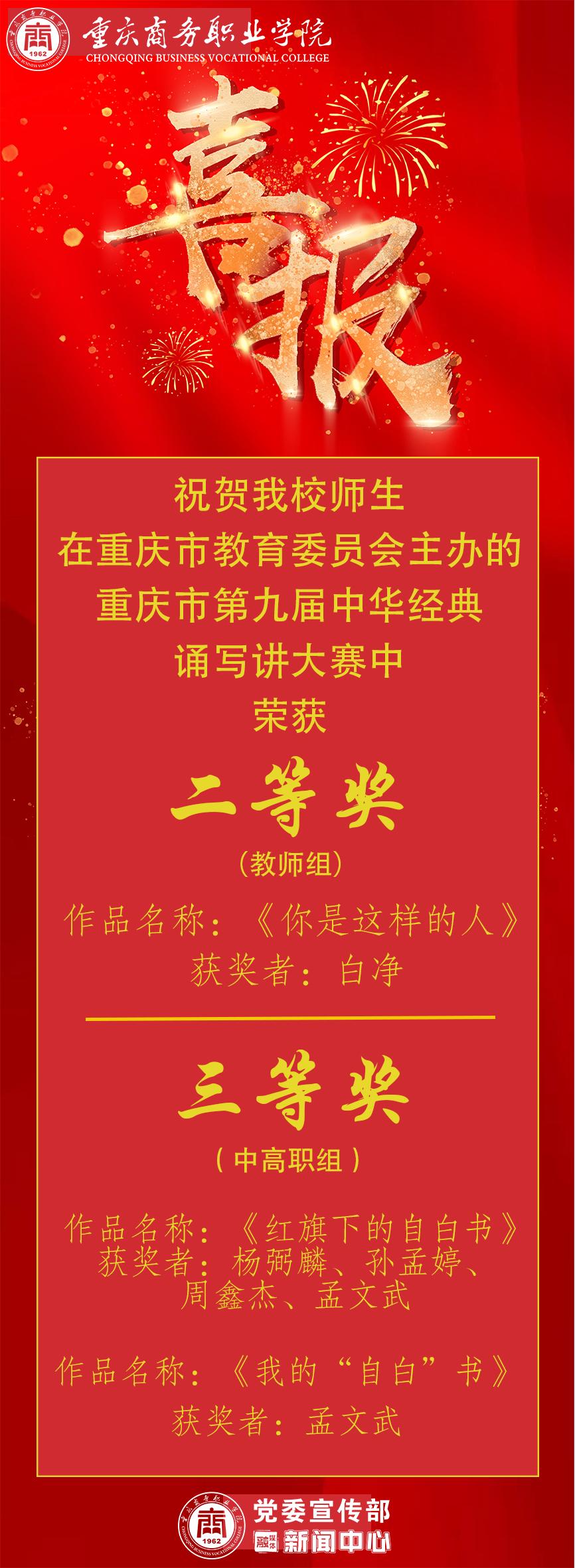祝贺我校师生在重庆市教育委员会主办的重庆市第九届中华经典诵写讲大赛中荣获奖项