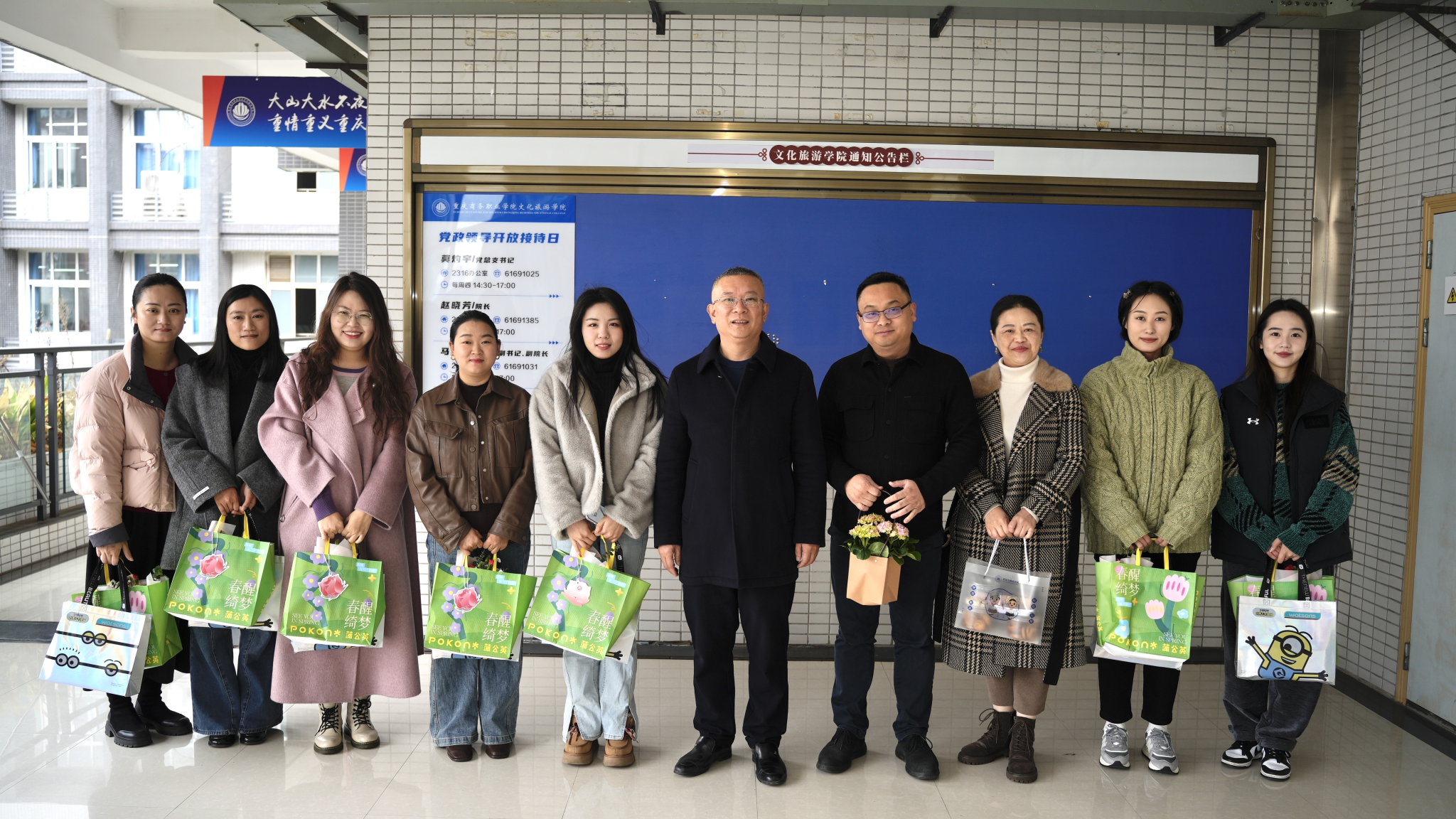 暖心慰问,传递温情。3月7日上午,学校党委班子成员深入基层,走访慰问一线女性教职工代表、物业公司员工代表,并送上鲜花与节日祝福。一束束芬芳的鲜花,承载着学校对女教职工的关怀与敬意,温暖了每一位奋斗在教育、教学、管理和服务岗位上的"她"。
