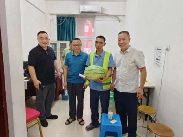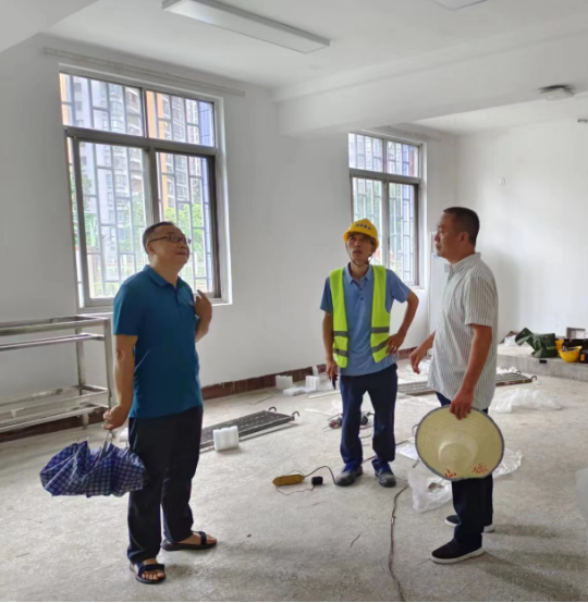 7月25日,副院长丁谦带领后勤处负责人及有关人员指导检查了南岸校区校舍改造项目,并慰问了施工单位和现场管理人员。