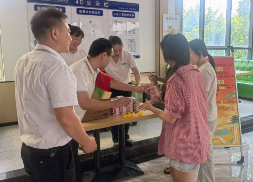 北苑食堂二楼为师生们精心准备了“情满中秋”免费餐券、开展赠送月饼,手机支架、找小黄鸭兑换水杯等活动、慰问军训教官组织节日聚餐;北苑一楼食堂、西苑一楼食堂、西苑二楼食堂通过赠送月饼、豆浆、西瓜等方式邀请我校在校师生共度佳节。