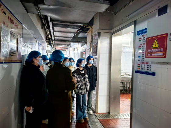 老师带领下,同学们深入后厨,零距离、全方位了解食堂从原材料采购、贮存、加工、留样、售饭及洗消的全过程,清晰直观地感受学校对食品安全和菜品质量严格管理的流程。
