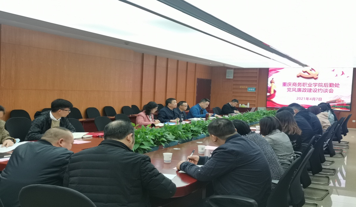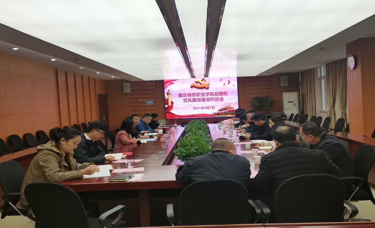 2021年4月7日上午,学校纪委在第五会议室组织召开了后勤处全体人员参加的2021年党风廉政建设约谈会。会议由纪委书记杨守康主持,分管副院长丁谦、纪检监察室处长李蓓英出席。