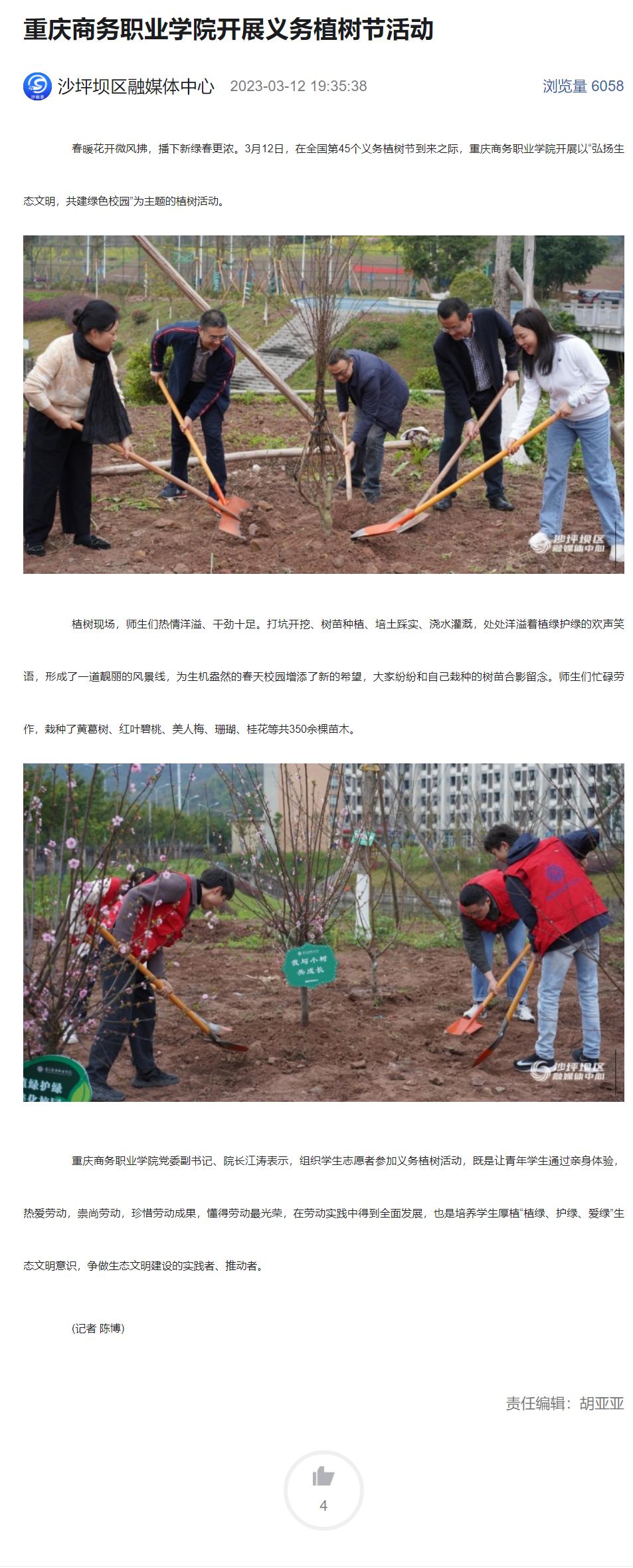 沙坪坝区融媒体中心报道了我校开展全国第45个植树节活动情况