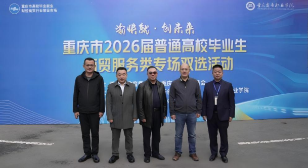 【文/招生就业处 图/党委宣传部】为深入贯彻教育部“金秋启航”校园招聘月部署,精准引导2026届毕业生把握求职关键期,促进高质量充分就业,11月19日,“渝快就·创未来”重庆市2026届普通高校毕业生商贸服务类专场双选活动暨重庆商务职业学院2025年秋季校园双选会在大学城校区成功举行。本次活动由重庆市教育委员会、重庆市商务委员会联合主办,重庆市学生就业与创新创业服务中心、重庆商务职业学院共同承办。