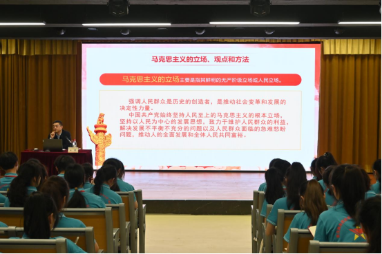 首先,江涛对青马学员提出“马克思主义它离我们远吗?”他指出马克思主义的立场、观点和方法指导着我们日常学习、生活和今后工作,我们要善于运用马克思主义的方法论和世界观。接着,他从马克思主义的立场、观点和方法,马克思主义哲学中的三大规律、五大范畴,马克思主义政治经济学中的生产力和生产关系,中国式现代化开辟了科学社会主义发展新境界四个方面进行详细讲授。最后,江涛提出,青马班的学员应以更高的目标和追求严格要求自己,并激励学员们继续拼搏向上、奋斗进取,不断实现自我提升、自我超越,在强国建设、民族复兴新征程上展现青春的锐气、朝气。