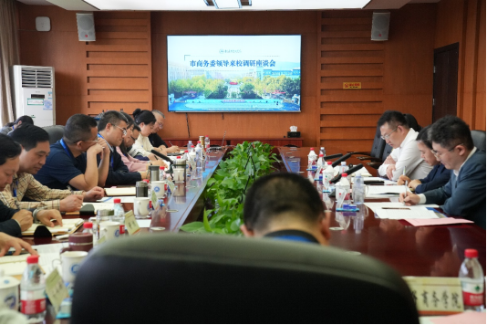 【文/图 党政办公室】4月12日,市商务委党组成员、副主任孙熙勇率队到校调研学校改革发展情况并召开座谈会。市商务委宣传教育处处长苟晓燕,新加坡企业发展局华西区主任张玉、商务经理胡晨,学校全体校领导,相关部门、二级学院党政负责人陪同调研并参加座谈。