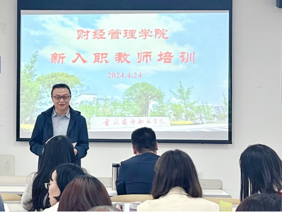 4月24日下午,财经管理学院新教师培训在2405教室举行,12名新教师参加培训。学校副院长丁谦到会指导。