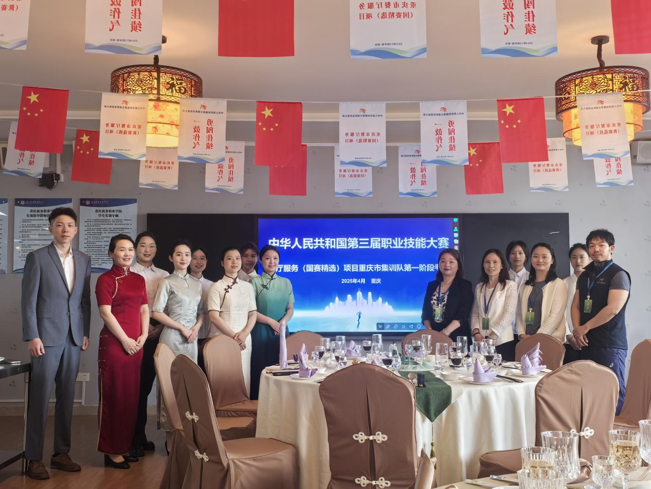 【文/图 文化旅游学院】为备战中华人民共和国第三届职业技能大赛,提升重庆市参赛选手的专业技能水平,由学校承办的餐厅服务项目(国赛精选)重庆市集训队第一阶段集训考核于4月24日顺利举行,本次考核严格按照国赛标准,全面检验选手的宴会服务综合能力,为选拔优秀选手参加全国大赛奠定基础。
