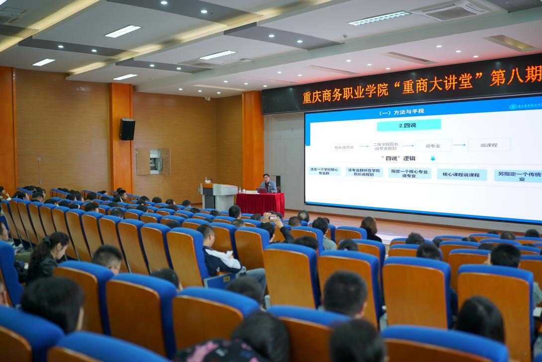 【文/质量管理处 图/党委宣传部】10月30日上午,第八期“重商大讲堂”在学校学术报告厅正式开讲。学校党委委员、副校长管军应邀作专题培训,党委委员、副校长李焱主持。相关职能部门负责人、各二级学院党总支书记、院长、分管教学副院长,全体专业带头人、专业负责人、教研室主任以及课程负责人代表等170余人参加。