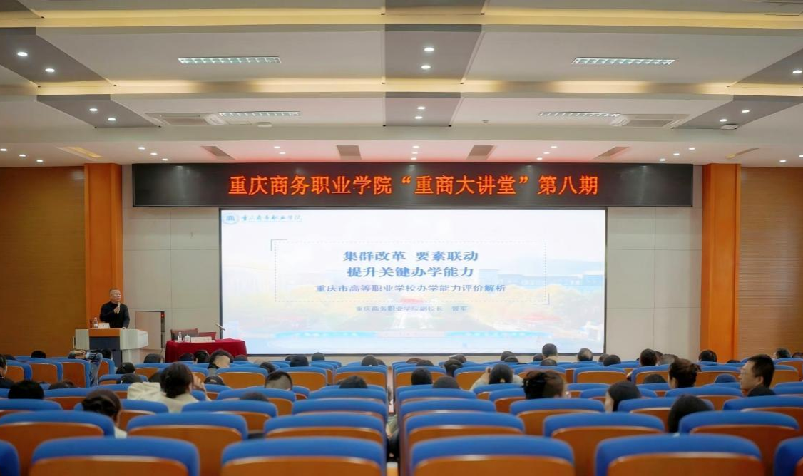 管军以《集群改革要素联动提升关键办学能力——重庆市高等职业学校办学能力评价解析》为题,结合《教育部关于印发〈高等职业学校办学能力评价实施方案(2025—2030年)〉的通知》《重庆市高等职业学校办学能力评价实施方案(2025—2030年)》等文件精神,围绕“为什么评、评什么、怎么评、如何迎评”四个方面,对办学能力评价工作进行了系统解读与深入剖析,详细阐述办学条件监测与教学工作评估两大板块的工作要求,并重点就迎评理念和“四说”,即“校长说办学、二级学院院长说专业建设规划、专业负责人说专业、课程负责人说课程”等内容展开细致讲解,为学校迎评工作提供了清晰的思路讲解与实操指导。