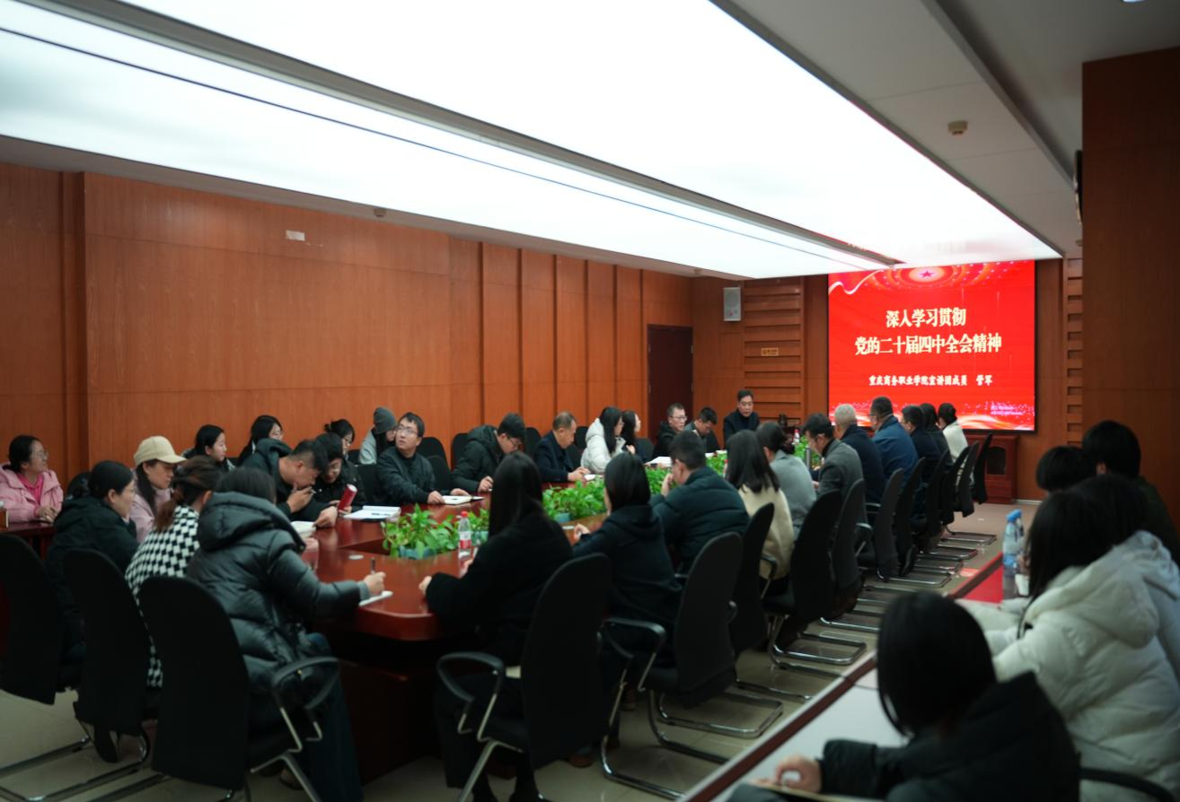 【文/图 科研处】12月22日下午,学校在办公楼三会议室举行学习贯彻党的二十届四中全会精神宣讲报告会。学校宣讲团成员,党委委员、副校长管军作宣讲报告。财务处、科研处(发展规划处)、资产管理处、信息技术中心,数字传媒学院、人工智能学院等教职工及学生代表共计60余人参会学习。