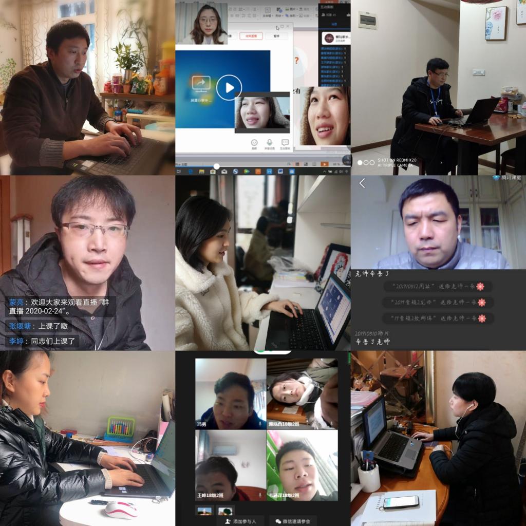 疫情是磨难,坚守是磨练。全校任课教师迅速行动起来,为确保疫情期间在线教学任务的圆满完成,在线教学平台的稳定运行,他们一遍遍地熟悉各个平台的操作指南,一遍遍地测试各个平台的稳定性,及时与班级学生对接,利用平台建班,并指导学生完成相关操作。他们快速实现角色转变,把教室搬到书房、把屏幕变作讲台,化身为教学主播,展示十八般武艺,把磨难转化为动力,用教书育人的坚守践行自己的初心。