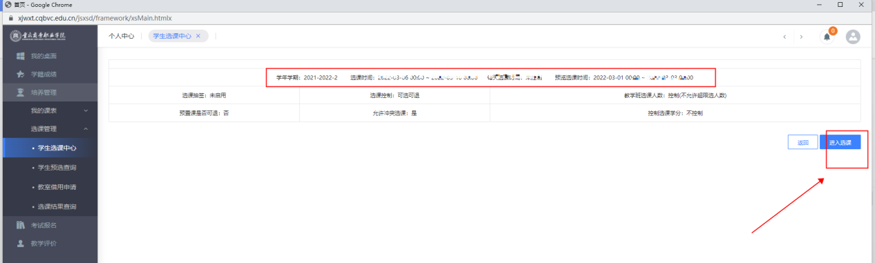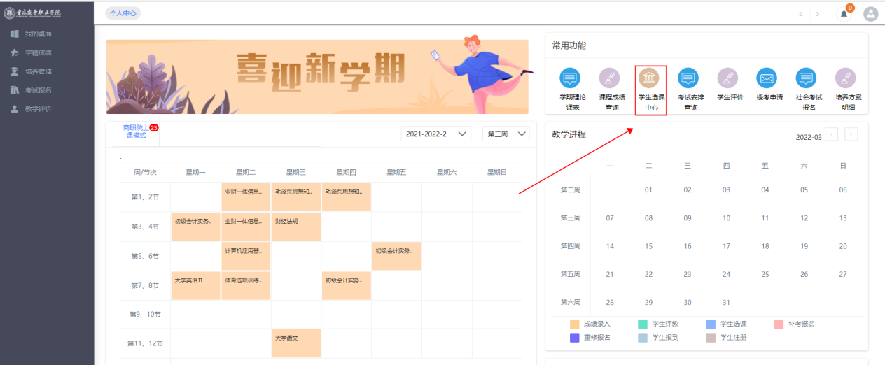 3)已选修过的课程不能重复学习,学生人培方案里已学的或将要学习的课程,也不能再重复选课学习;