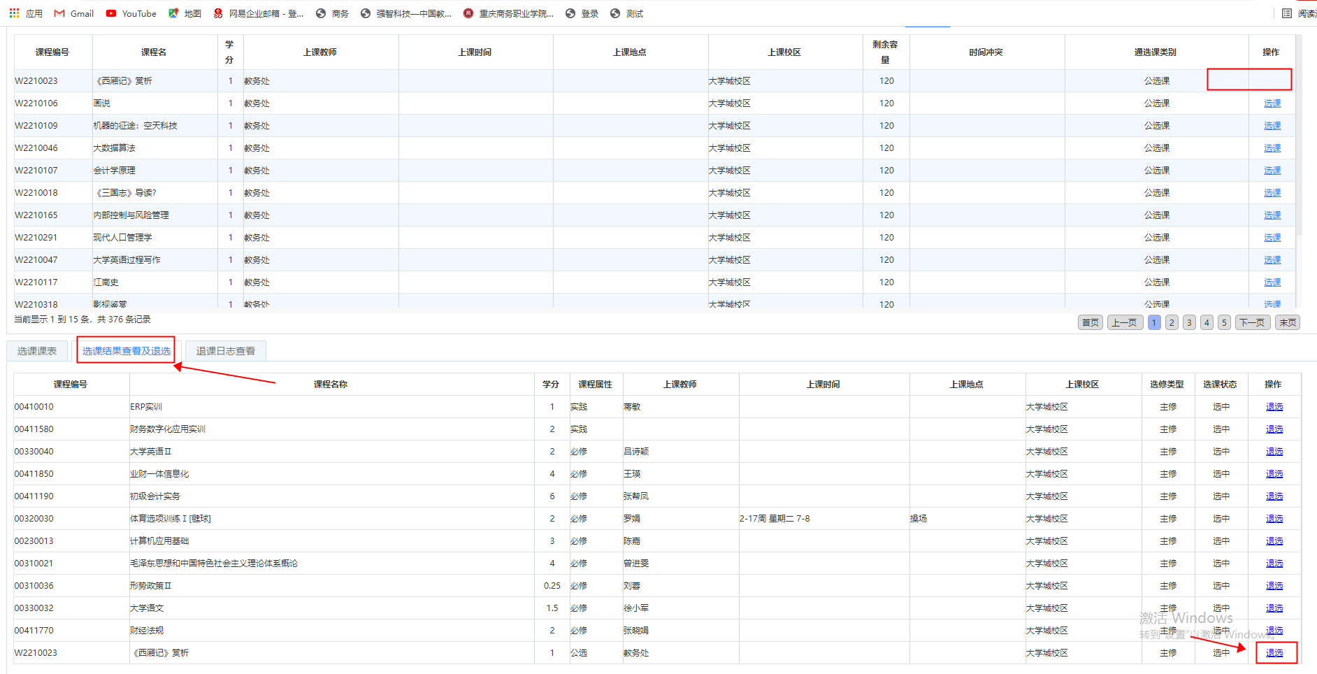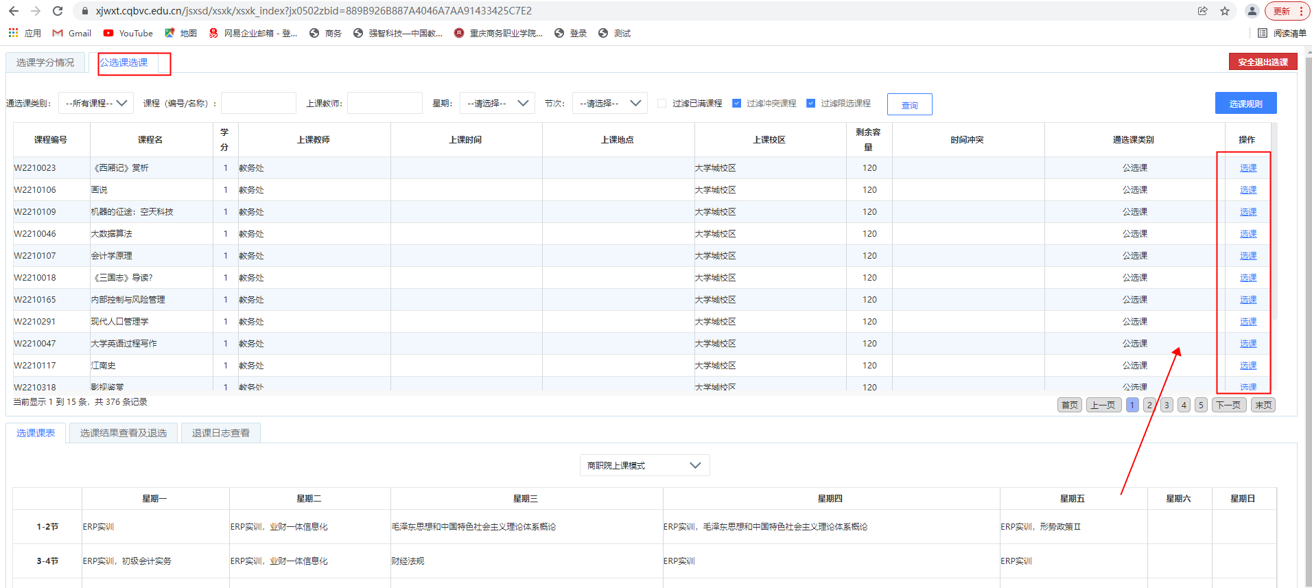 2.3 进入选课,选择公选课选课,在右边选择课程