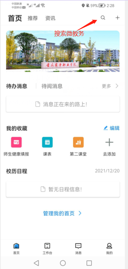 手机端登陆方式:从学校智慧商务学院APP,首面搜索。