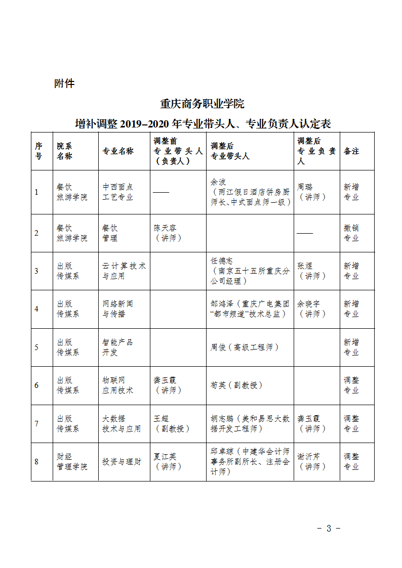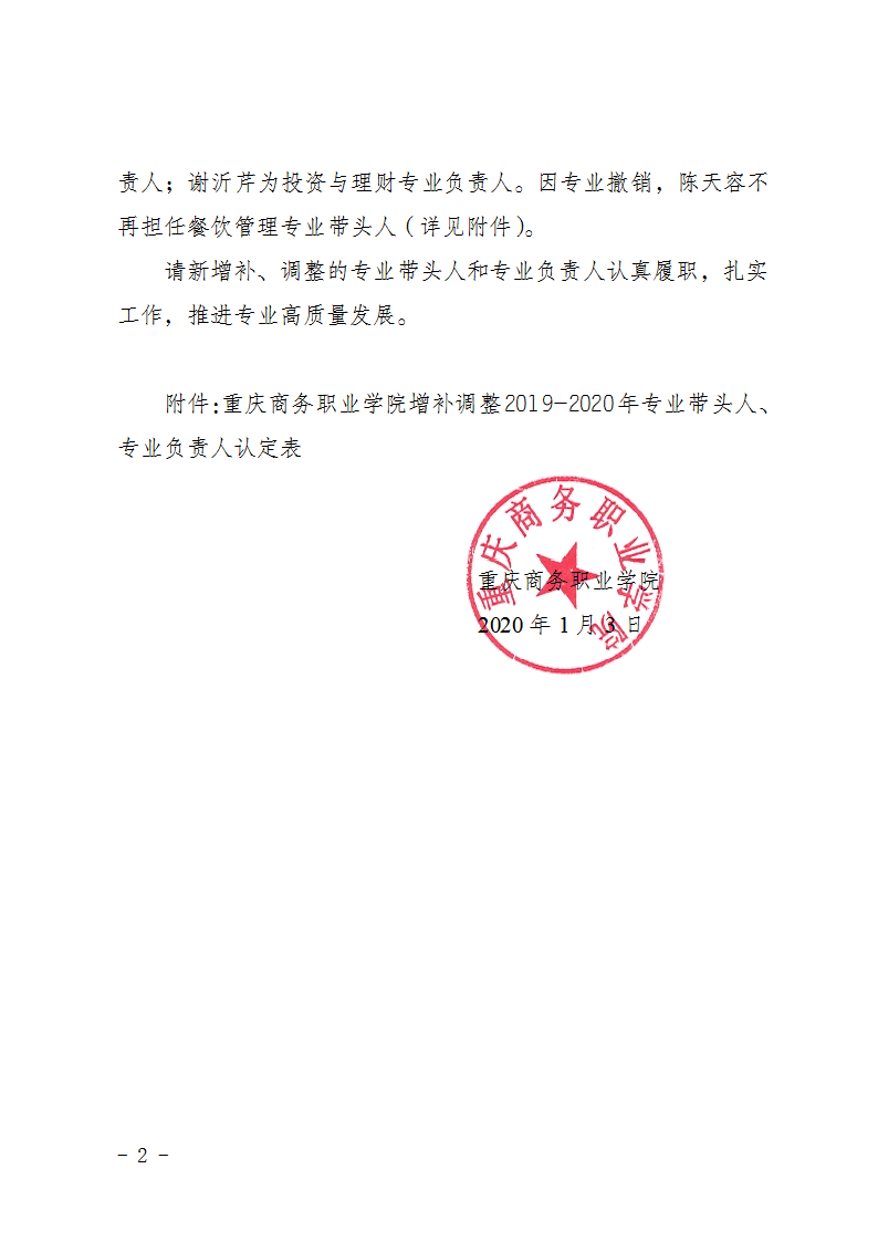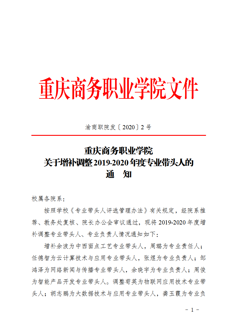 重庆商务职业学院关于增补调整2019-2020年度专业带头人的通知