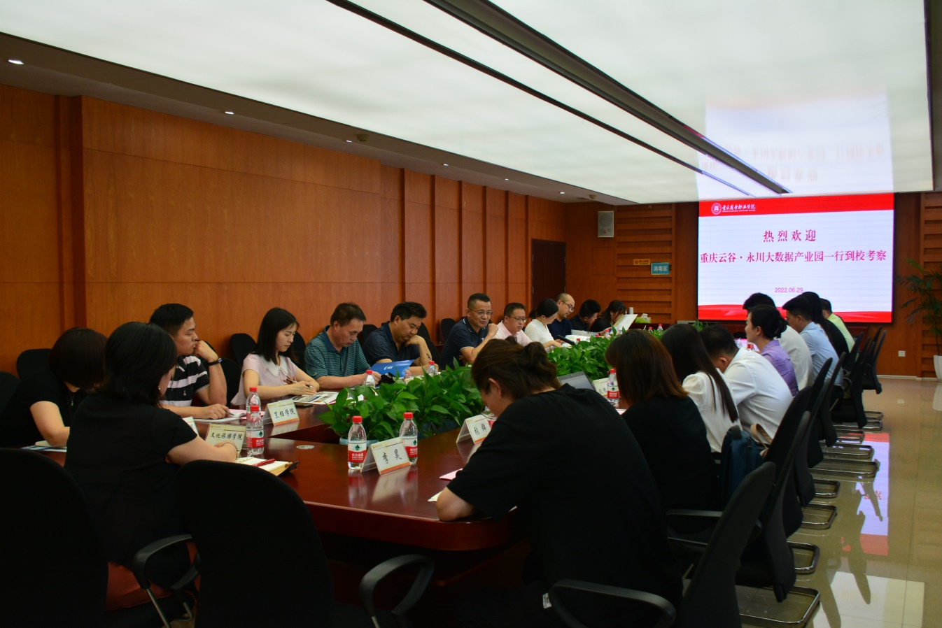 [文/教务处 图/党委宣传部]6月29日下午,重庆云谷·永川大数据产业园区副主任张晓波一行11人到校交流工作。学校副院长贾小波,教务处、实习实训管理中心、会计学院、财经管理学院、人工智能学院、烹饪学院、电子商务学院、经济贸易学院、出版传媒学院、文化旅游学院相关负责人参会。