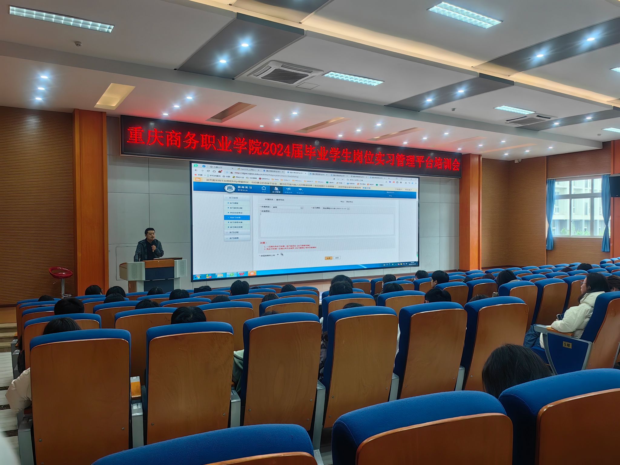 【文 图/教务处】11月15日,学校在学术报告厅召开2024届毕业学生岗位实习管理平台培训会。教务处、相关二级学院学团办和教务办相关负责人,实习指导教师、毕业班级辅导员、2024届毕业学生代表参会。