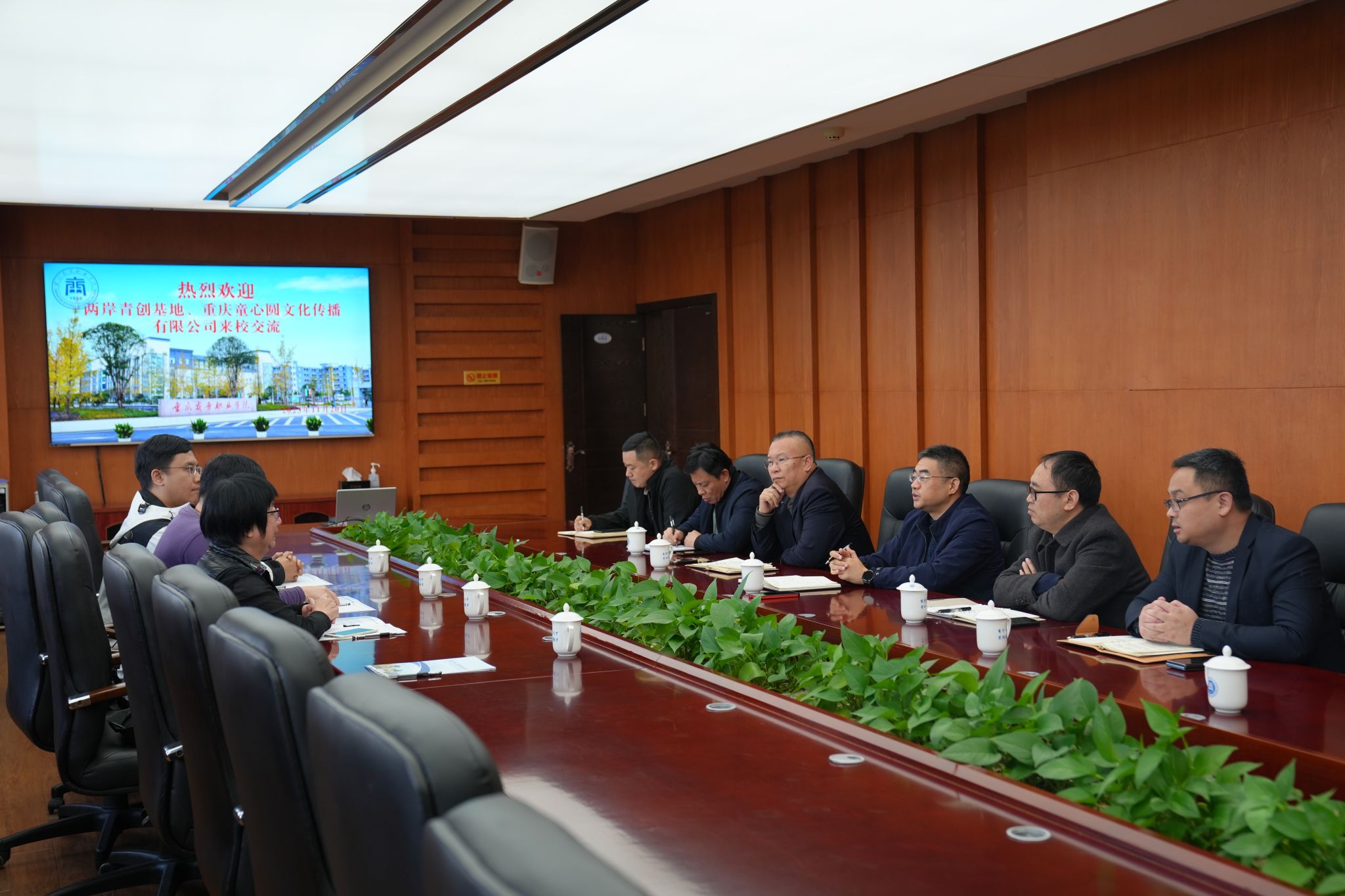 【文/教务处 图/党委宣传部】 11月20日,重庆海峡两岸青年创新创业基地负责人彭萩玉、重庆童心圆文化传播有限公司杨斌等一行到校交流校企合作,院长江涛,教务处、招生就业处、经济贸易学院、文化旅游学院相关负责人参加交流会,双方就学生实习、就业创业、专业建设等方面进行了交流。