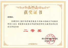 为进一步落实《重庆市高等教育事业发展“十四五”规划(2021—2025年)》、《关于新时代振兴重庆高等教育的若干措施》等文件要求,高水平落实立德树人根本任务,全面加强新时代高校教育研究与教学改革工作,推动优质教科研成果服务教育决策与教育实践,加快推进重庆高等教育高质量发展,重庆市教育科学研究院组织开展了第四届重庆市高等教育研究与教学改革优秀论文评选活动。