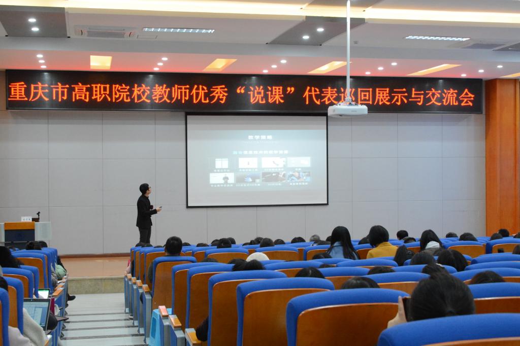 根据《重庆市教育委员会关于开展高等学校“五说”系列论坛的通知》和《重庆市高职教育研究会2019年工作要点》等文件精神,我校于2019年11月27日下午在学术报告厅组织召开了重庆市高职院校教师优秀“说课”代表巡回展示与交流会。会议有幸邀请到重庆市2018年高等职业院校教师说课比赛一等奖获得者重庆工业职业技术学院刘蘅教师、重庆城市职业学院伯黎醒教师、重庆科创职业学院张海燕教师来校进行巡回展示与经验交流,会议由重庆市高等职业技术教育研究会研究会会长张亚杭主持。在家的校领导,全校专兼职教师,重庆青年职业技术学院、重庆工商职业学院、重庆海联职业技术学院部分教师参加会议。