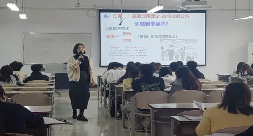 本堂课教学内容是基数效用理论。谭秀芬老师在教学过程中通过问题导入、案例分析、游戏强化等方法深入浅出地引导学生理解经济学相关概念,将理论知识融入到日常生活场景,同时自然有效地融入思政元素。课堂上,学生们积极参与,师生互动效果较好,能把理论知识与实践相结合,到学以致用。
